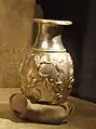 - A rhyta jug with images gods at a feast, scenes showing the mythological cycles, with images of Dionysus and Heracles, satyrs, griffons, and sphinxes.[4]