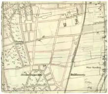For the expansion of the industrial area Obersendling of the Isarwerke in 1899, the chief board member of the Munich city expansion department, Theodor Fischer, designed a road network. In 1901 it was named Poschetsried after the former Hofmark (demarcated district of a manorial dominion) Poschetsried.[3] Poschetsried, also known as Boschetsried, had emerged from the clearing of a farmer named Barschalk in the early 10th century and has been documented to be in the procession from the von Hörwarth family since 1593. From 1703, they renovated the seat there, which later became Fürstenried Palace of the House of Wittelsbach.[4]