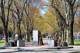 The idea of a memorial to women was first discussed in 1992 in recognition of the under-representation of women among Boston's statues.[1] A collaboration between the Boston Women's Commission, the Commonwealth Avenue Mall Committee and the Massachusetts Historical Society,[2] supported by Angela Menino, the mayor's wife, developed it over the next twelve years.[3][4]