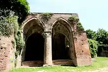 | Fonte al Pino | Botanischer Garten (Orto botanico) 43°18′46″N 11°19′49″E / 43.312683°N 11.330288°E | 297 m s.l.m.[24] | Also Fonte dell'Orto Botanico, Fonte di Valle Berardi.[25] The fountain is located within the city walls near the Porta Tufi in what is now the botanical garden of the University of Siena and it is supplied by an independent and dug Bottino.[24] It is mentioned for the first time in 1231.[25] | ![]() Fonte al Pino |
