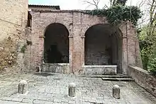 | Fonte di Pescaia | Strada delle Fonti di Pescaia 43°19′32″N 11°19′22″E / 43.325633°N 11.322668°E | 304 m s.l.m.[20] | Also called Fonti di Pescaia. The fountain is outside the city walls. Today it houses the Museo dell'Acqua. | ![]() Fonte di Pescaia |
