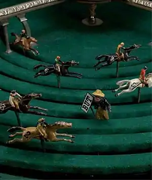 Petits Chevaux was the predecessor of Boule. The pockets of many Boule wheels are decorated with pictures of horses in commemoration of Petits Chevaux. Around 1900 Petits Chevaux was a very popular casino game. A surviving gaming table by the firm of J. A. Jost (Paris c. 1905) is displayed in the Swiss Museum of Games in La Tour-de-Peilz. Until 2003, a similar game, the horse roulette game of Klondyke, was played in Baden-Baden's casino at the time of the Iffezheim Races. The gaming apparatus is housed today in Baden-Baden's Municipal Museum.