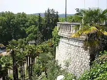 Detail of the terrace supporting the boulevard, and the gardens below.