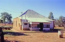 Although the majority of the surviving buildings of the town date from the 1930s or later, there are some remaining early timber structures, such as the core of the Post Office (1885). The only other evidence of stone construction nearby is the ruins of the Native Police Barracks some 25 kilometres (16 mi) from the town.[1]