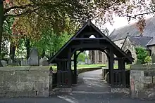 The wooden Lych-gate, which now forms the main entrance to the church from Boulton Lane was constructed just after the first World War as a memorial to the local servicemen of Great War. The structure was built by Joseph Thomas Fisher, a local carpenter and joiner who also served in the Great War.[7]