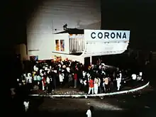 The set of Seye's first short film Bandit Cinéma in front of the Corona cinema, Dakar, 1992.