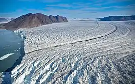 The Bowdoin Glacier discharges at the head of the Bowdoin Fjord from the Greenland Ice Sheet to the northeast of Prudhoe Land.[4][1]