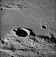Bowen is a small lunar impact crater that is located to the southwest of the Montes Haemus, on the edge of a small lunar mare named the Lacus Doloris. It was named after American astronomer Ira S. Bowen.[1] It is distinguished only by having a relatively flat floor, rather than being bowl-shaped like most small craters. Bowen was previously designated Manilius A. The crater Manilius is located to the south, at the opposite shore of the Lacus.