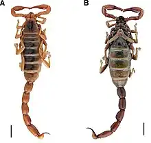 1. 1 2 José A. Ochoai; André S.A. Ojanguren Affilastro (April 2007). "Systematics and distribution of Brachistosternus (Brachistosternus) ehrenbergii (Gervais, 1841), with the first record of stridulation in this genus Brachistosternus (Scorpiones: Bothriuridae)" (PDF). Studies on Neotropical Fauna and Environment. 42 (1): 61. doi:10.1080/01650520600800310. Retrieved February 5, 2014.