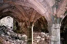 The undercroft was placed on the Heritage at Risk Register by Historic England, the successor to English Heritage.[27] This enabled grants in 2017 and 2019[27] to assist the owner with two phases of work: initial propping, waterproofing and investigative works, followed by a substantial restoration project to repair and stabilise the ruins. This work was completed in January 2020, and the site was removed from the Register in 2020.[28]