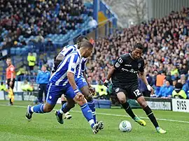 ![]() Diallo (right) playing for Oldham Athletic | |||