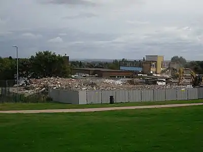 In the Summer of 2009 demolition of the unsafe blocks in the upper school was completed, demolishing the science block, 3 storey tower block, and the 6th form block, leaving the gym, changing rooms, barn, and the art and music block, built by more recent construction. Prompt demolition was favoured to reduce the running costs of empty buildings.[32]