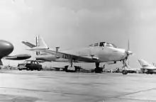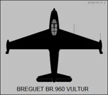 The Bréguet Br 960 Vultur was a prototype two-seat carrier-based attack and anti-submarine aircraft (ASW) built for the French Navy (Marine Nationale) during the early 1950s. Meeting contradictory endurance and speed requirements, it was designed as a "mixed-power" aircraft with a turboprop engine in the front and a turbojet in the rear. Only two examples were built, but the second aircraft was rebuilt as the prototype of the Bréguet 1050 Alizé ASW aircraft after the Navy dropped the idea of a turboprop attack aircraft in the mid-1950s.