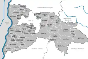 The district of Breisgau-Hochschwarzwald was established as part of the district reform of Baden-Württemberg on 1 Jan 1973, mainly from the former rural districts of Freiburg, Müllheim and Hochschwarzwald (with its head office in Neustadt in the Black Forest). In addition, the municipality of Unadingen from the district of Donaueschingen was incorporated.[4] Other municipalities were integrated into the city of Freiburg. The southern part of the district of Müllheim went to Lörrach and some municipalities were transferred from the old district of Hochschwarzwald to Waldshut.
