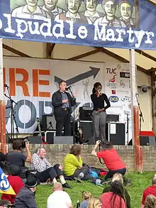 ![]() Barber speaking at the Tolpuddle Martyrs' Festival and Rally in 2012 | |