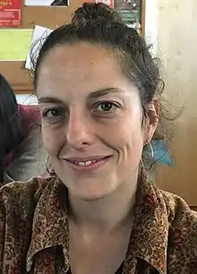 She is a founding member of the TrowelBlazers collective, which seeks to promote awareness of female participation in science, particularly contributions to archaeology, palaeontology, and geology. This project has included a public-participatory online archive , as well as much wider engagement with social media communities and public talks, panel discussions, and lectures aimed at diverse audiences. In 2015, TrowelBlazers worked with the toy company Arklu to develop the Fossil Hunter Lottie Doll,[24] which is now sold all over the world.[25][26] In 2016, TrowelBlazes developed and launched the Raising Horizons project, which was a collaboration highlighting the contributions of women geoscientists past and present with artist Leonora Saunders and toured the UK throughout 2017-19.[27][28][29]