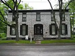 Brick Tavern Stand, also known as Clawson House, is a historic inn and tavern located at Montour Falls in Schuyler County, New York. It was built in 1828 and is a two-story, five bay Federal style brick structure featuring a recessed entrance. Built originally as a tavern on the stagecoach lines of the Finger Lakes Region, it was later modified for use as Bethesda Sanitarium and operated by Dr. Charles Deland Clawson. In 1974, it became home to the Schuyler County Historical Society.[2]