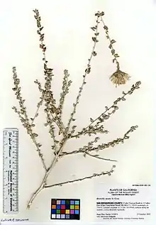 Brickellia incana is a North American species of flowering plant in the family Asteraceae known by the common name woolly brickellbush. It is native to the Mojave Desert and Sonoran Desert in the southwestern United States, in California, Nevada, and Arizona.[2]