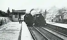 In the 1950s, in response to fears of Soviet military action, plans were prepared for the construction of twenty-five atom-bomb-proof control bunkers[2] away from expected target areas. Only five[3] were completed; the one at Bricket Wood is situated in the trees between the station and Railway Cottages. It was built c. 1954 in order, in the event of war, to take over the running of the railway network from the London Euston control room.[4]