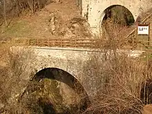 The Bridge of Gran Arvou (Italian: Ponte acquedotto di Grand Arvou, French: Pont aqueduc du Grand Arvou) is an aqueduct-bridge in the frazione Porossan of Aosta, north-western Italy. It span the Rû Prévôt irrigation canal, and includes a large corridor covered by flagstones. Another aqueduct-bridge, the Petit Arvou, is located a few meters downstream.