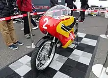 The racers were first tried at the new Fisco circuit (now Fuji Speedway) in March 1966. The machines won both the 50 cc and 90 cc novice races and also the 50 cc experts race.[23] The next outing was at the non-championship Malaysian GP at Easter that year. Six 50 cc machines were entered, riders included former Suzuki riders Isao Morishita and Mitsuo Itoh. Good results in Malaysia encouraged the team to try some of the European GPs. The team arrived in Britain to participate in the 1966 Isle of Man TT, but the event was postponed due to a seamen's strike. By this time the machines could rev to 18,000 rpm and were fitted with 10 speed gearboxes.[24]