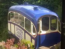 Between 1943 and 1944 the system was rebuilt to use electricity, with an official re-opening on 9 May 1944 by Mayor T.C. Pembro – who had taken office only 2 hours previously. In 1955 the original heavy wooden cars were replaced by the 'up-to-date' stronger and lighter (5.4 long tons or 5.5 tonnes) aluminium monocoque ones still in use today. Each car can carry up to 18 passengers.[7][8]