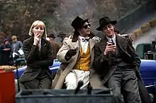 The film proved to be the last for John Mills, who appears briefly in the non-speaking role of an elderly party guest enthralled by the effects of cocaine.[4] The character of Lord Monomark is based on Lord Beaverbrook, who once employed Evelyn Waugh as a writer for his newspaper, the Sunday Express (which in the novel and film becomes the Daily Excess). Waugh's original name for his character was "Lord Ottercreek", before his lawyers intervened.[5] Monomark, like Beaverbrook, a Canadian, is played by the Canadian Dan Aykroyd.