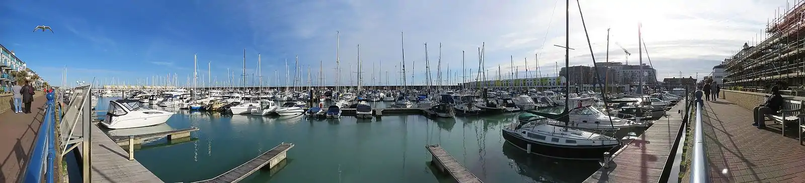 Panoramic image of the inner harbour of Brighton Marina