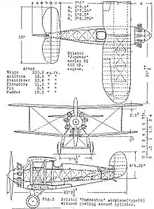 Bristol Badminton 3-view drawing from NACA Aircraft Circular No.19