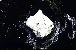 In 2005, three overlapping craters cropped out from the ice at Mount Sourabaya, with another crater 1 kilometre (0.62 mi) farther east.[30] During April-July 2016, an eruption at Mount Sourabaya emplaced two lava flows and produced ash emissions that were visible from satellites[16] and led to the issuance of volcanic ash advisories.[39] Temperature anomalies indicative of fumaroles are visible from satellites[40] and are centered on the crater of Mount Sourabaya.[41] Helicopter-assisted ascents to the summit of Mount Sourabaya have found hot ground.[42] Ice is melted in the proximity of active craters[23] but otherwise volcanic impacts on the ice cover are minimal.[31]