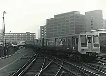 In 1971, the South-East Lancashire and North-East Cheshire (SELNEC) Passenger Transport Executive, the body responsible for public transport in and around the Greater Manchester area, proposed the construction of a new underground railway tunnel intended to link Manchester's two remaining major railway termini, Piccadilly and Victoria, to create a new urban metro network.[1] This tunnel, nicknamed the "Picc-Vic", was intended to link the disparate rail networks to the north (from Victoria) and south (from Piccadilly) of the city for the first time, allowing services through the Manchester city centre.[2] At the time, the planned routes that would have been joined to the tunnel were a mix of electrified and non-electrified;[3] the Bury Line, from Victoria, used a unique, 1200 V DC third rail system;[4] the Buxton line was unelectrified,[5] while the Styal, Crewe and Stafford lines were all electrified using 25 kV AC from overhead wires (OHLE).[6] The proposal would have seen the entire planned network run using OHLE, which had recently opened on the West Coast Main Line as far as Manchester Piccadilly.[7] As a consequence of this, new rolling stock was planned to operate the proposed services.