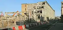 British United Shoe Machinery main factory building being demolished, Ross Walk, Leicester, 2010