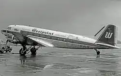 Douglas C-47A Dakota of British Westpoint Airlines at Manchester Airport in 1965