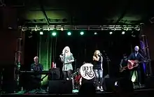 Hölljes (right) performing with Delta Rae aboard USS Bataan (LHD-5) in 2014