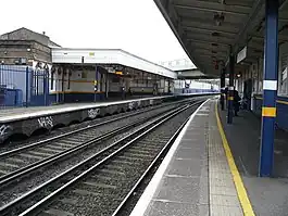 Brixton railway station is a commuter railway station in Brixton, South London, UK. It is on the Chatham Main Line, 3 miles 14 chains (5.1 km) down the line from London Victoria. Trains are operated by Southeastern. The typical service is one train every 15 minutes in both directions, from Victoria to Orpington via Bromley South.