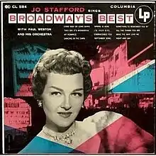 Broadway's Best is an album by Jo Stafford, released in 1953 by Columbia Records. Stafford sings songs from famous Broadway shows backed by Paul Weston and his Orchestra. This album by Columbia was never re-released on compact disc.[2] An MP3 album was issued in 2008.