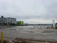 Known as Canada Half Tide Dock when opened in 1862,[1] it had two branch docks to the east which were known as North and South Carriers' Docks.[2] Timber was initially the principal cargo,[3] with fire a consequent safety concern. The original river entrance presented navigational difficulties, with the area affected by silting. The dock was renamed in 1879 in honour of Ralph Brocklebank,[2] Chairman of the Mersey Docks and Harbour Board between 1863 and 1869.[3]