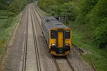 A First Great Western service on the Bristol to Taunton Line passes the bridge at Chelvey Lane.