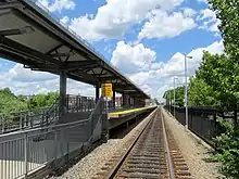 The modern station has a full-length high-level platform that is handicapped accessible