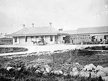 The Victorian-style Brockton station before it was replaced in the 1890s