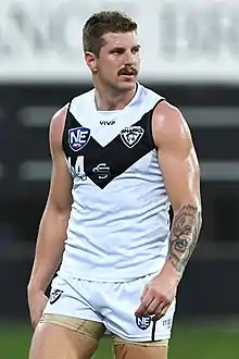 Brodie Murdoch (born 21 January 1994) is a former professional Australian rules footballer who played for the St Kilda Football Club in the Australian Football League (AFL). He was recruited by the club in the 2012 National Draft from SANFL club Glenelg, with pick 40. His original country club is Port MacDonnell in the Southeast of SA. Murdoch made his debut in Round 5, 2013, against Sydney at Westpac Stadium in Wellington NZ.[1] At the conclusion of the 2016 season, he was delisted by St Kilda. He went on to win consecutive premierships with Port Melbourne in the VFL (2017) and Southport in the NEAFL (2018). [2]