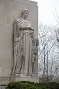 Inspired by Parks Commissioner Robert Moses’s desire to provide a World War II monument to each borough, this monument was created. It is a granite and limestone 24-foot-tall (7.3 m) memorial designed by Stuart Constable, Gilmore D. Clarke, and W. Earle Andrews, who worked in concert with the architectural firm of Eggers and Higgins.[1] The two larger-than-life sized high relief figures by sculptor Charles Keck (1875–1951) are located on the south facade, at opposite ends of the building. It honors Brooklynites who served in World War II. The full plan, however, was never fully built because of lack of funding.[1]