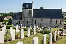 ![]() Brouay war cemetery adjacent to Brouay Church | |