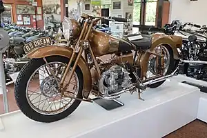 The Brough Superior Golden Dream was designed and built by George Brough in Nottingham, England, in 1938. With its distinctive gold finish, this was to be the ultimate Brough Superior but production was stopped by the outbreak of War in 1939.[1]