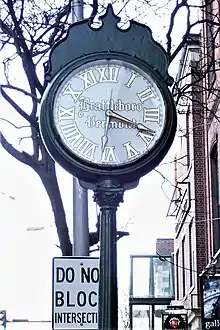The Brown Street Clock Company of Monessen, Pennsylvania manufactured street clocks in the early twentieth century. It was a family owned company run by H.R. Brown and his three sons and all parts of the clock were made in the Monessen Valley.[1] Many of these clocks were sold to and used by jewelers as signs for their businesses as they were marketed in Swartchild & Company, a major industry publication.[2] Their cast iron clocks were considered to be more affordable and resilient than those of other manufacturers.[3]