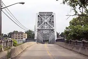 The Brownsville Bridge, also known as the Intercounty Bridge and the West Brownsville Bridge (most often heard in the high counties east of the river), is a truss bridge that carries vehicular traffic across the Monongahela River between Brownsville, Pennsylvania and West Brownsville, Pennsylvania. Since the opening of the Lane Bane Bridge and highway project to carry much of the intercounty through traffic away from the main streets of downtown Brownsville in the early 1960s, another commonly heard name is Old Brownsville Bridge for the four high level viaduct.