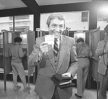Herschensohn casting his vote in the 1986 U.S. Senate election.