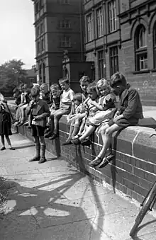Children on school wall 1949