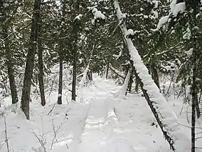 The North Country Trail passes through the Brule Bog near the southern boundary of the forest