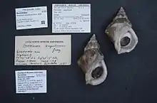 - ↑ Buccinum angulosum Gray J.E., 1839. Retrieved through: World Register of Marine Species.